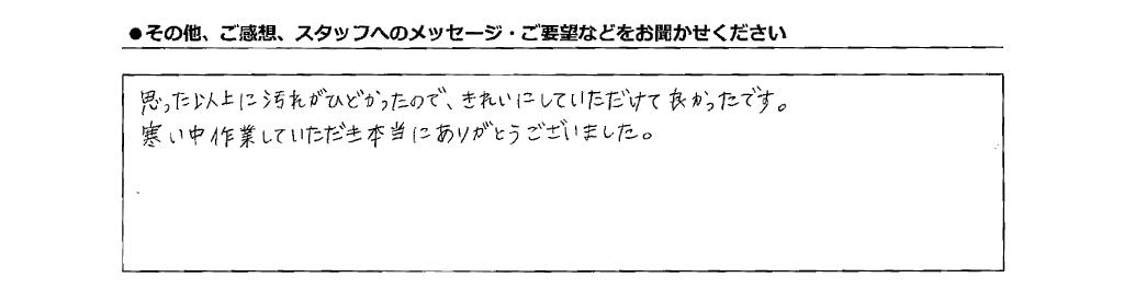寒い中、外での作業(換気扇の洗い)ありがとうございました。